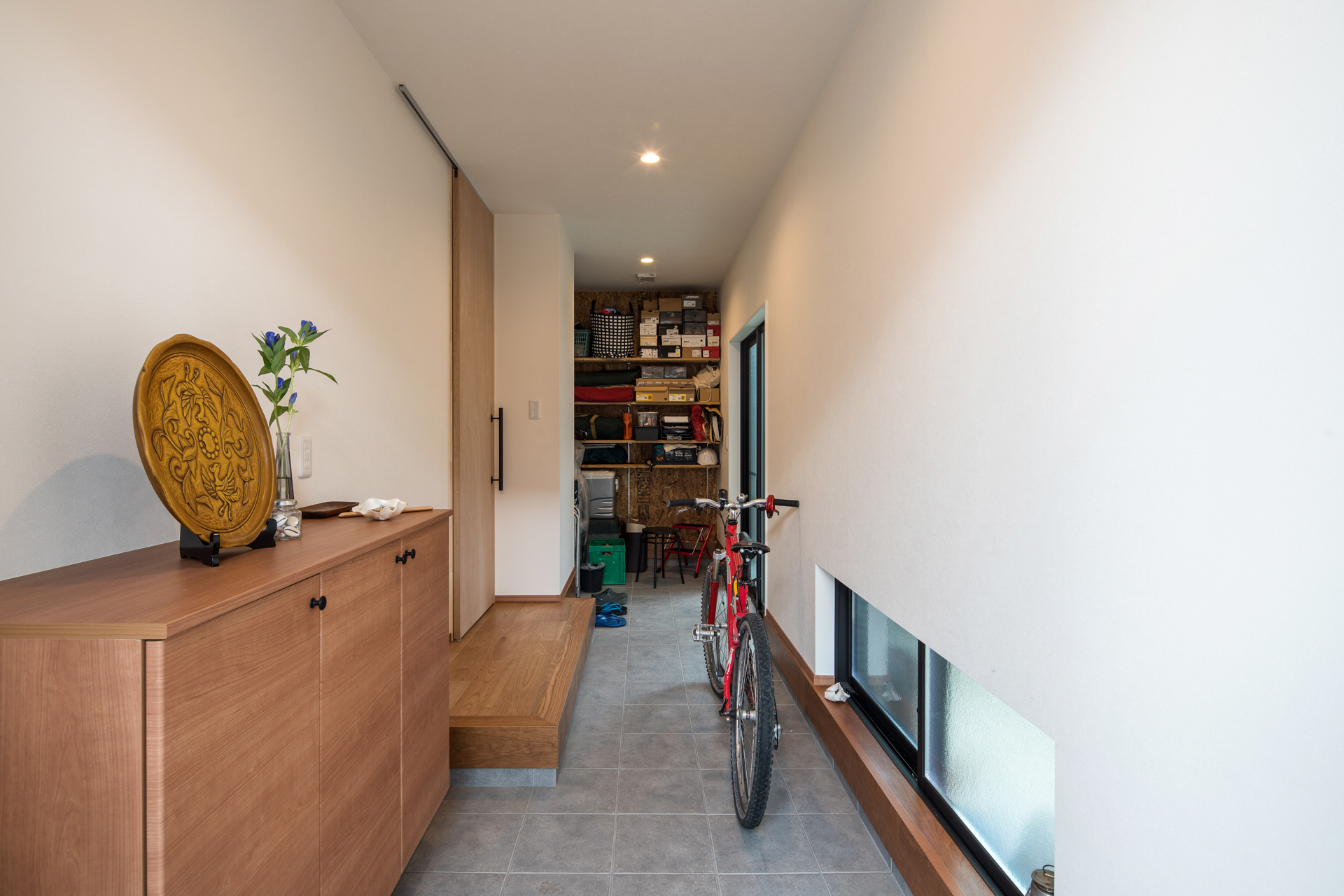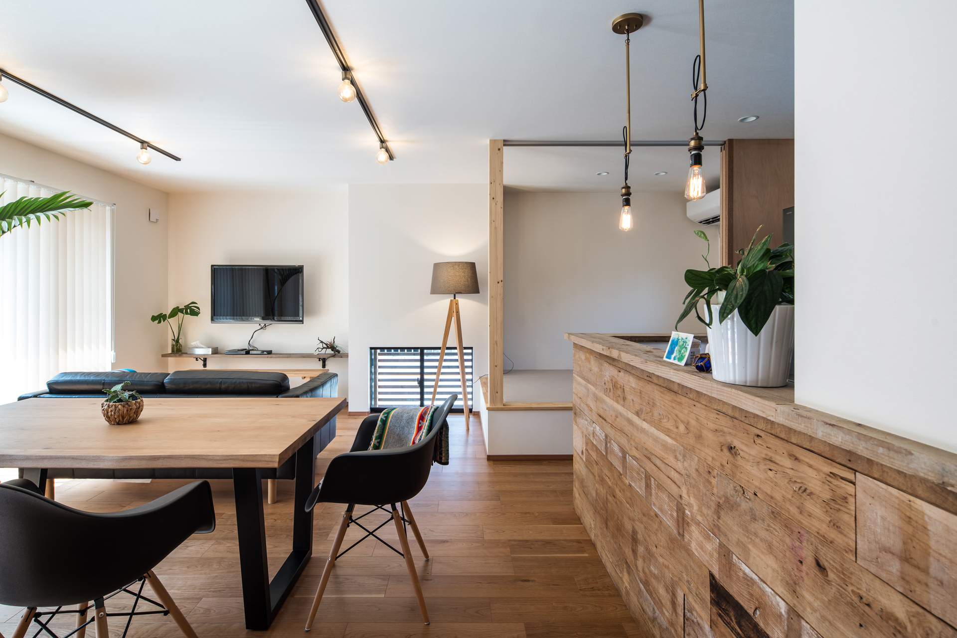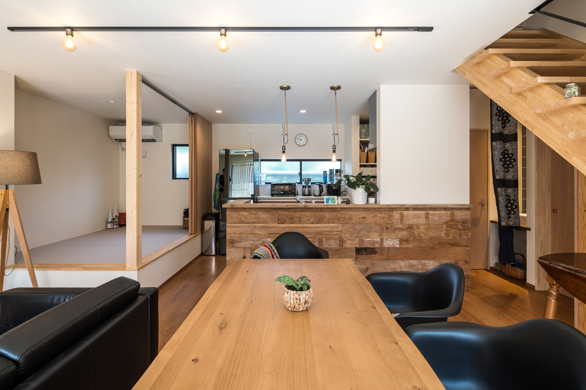 趣きある北鎌倉に戸建住宅が完成しました。交通量の多い道路面の外観は木製格子の内側に窓を設置することで、視線を遮りながら明るさを取り入れ木製格子が温かみのあるアクセントになっています。LDKは小上がり和室や古材で仕上げたキッチンカウンターをなどお施主様のこだわりがつまった空間に。2階に寝室と水まわりを集めた事で生活導線がスムーズになりご家族皆が暮らしやすく、家事もしやすい間取りになりました。